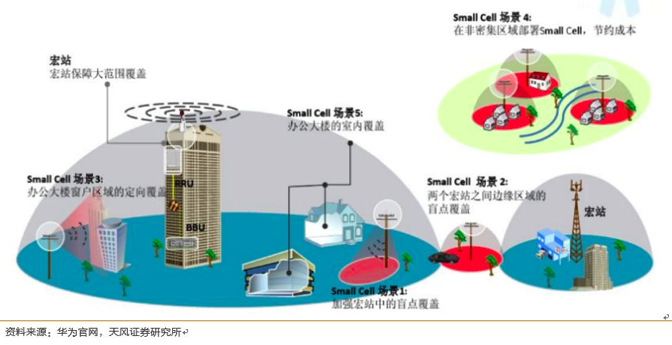 5G時期基站的數量將會大大增加,這會增加運營商的建網成本,而小基站具有部署靈活、同頻干擾小等優點(可以實現間距10~20米間的部署,對比宏基站部署間距一般需要達到500米以上),非常適合熱點區域覆蓋,或將成為5G時代基站增加站點的主要方式。